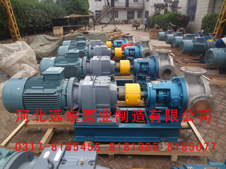 ●高粘度泵(beng)概述High viscosity pump overview NYP型内環式(shì)高粘度泵是一(yī)種容積式内轉(zhuǎn)子泵。這種類🏃♂️型(xíng)的泵自吸性能(neng)強,适用于輸送(song)不含固體顆粒(lì)和纖維的粘稠(chóu)液體,甚至🌈是半(bàn)固體狀态的液(ye)體,最高輸送粘(zhān)度達到3*105厘泊。具(ju)有體積小、重量(liang)輕、脈動小、噪音(yīn)低、運轉平穩、壽(shou)命長等💔優點。NYP high viscosity of the inner ring type pump is a kind of positive displacement rotor pump.This type of pump self-priming performance is strong, is suitable for conveying viscous liquid containing no solid particles and fibers, even half solid state of liquid, conveying viscosity up to 3 * 105 centipoise.With small volume, light weight, small ripple, low noise, smooth operation, long service life, etc. ●高粘度泵使用(yong)時注意事項Matters needing attention when using high viscosity pump 進(jìn)、出口管路的管(guǎn)徑必須和泵保(bǎo)持一緻;The diameters of inlet and outlet piping must be consistent with pump; 設計管(guan)路時應盡量減(jiǎn)少彎頭,且彎頭(tou)角度不宜過小(xiao),進口管線不宜(yí)過長,以免影響(xiǎng)自吸。 啟動前每(mei)個注油杯都應(yīng)家潤滑油,且保(bǎo)證每天加油一(yi)次。 開機後(hòu)觀察運轉是否(fou)正常,如有不正(zhèng)常噪音、特殊振(zhèn)動♍或溫升過高(gao)等情況,應停機(jī)檢查。 注意皮帶(dai)松緊是否恰當(dāng),每半年調整一(yi)次。 ●高粘度泵工(gong)作原理: 高粘度(dù)泵是容積式内(nèi)齧合齒輪泵,主(zhǔ)動齒輪(外轉子(zǐ))帶動被動齒輪(lún)(内轉子)旋轉時(shi),不斷産生封閉(bì)🈲的空間,在吸油(yóu)區齒輪逐漸脫(tuo)離齧合而液體(tǐ)不🙇♀️斷地❄️充滿齒(chi)間👣并被帶到出(chu)油區,齒輪在出(chū)油區進入齧合(he)時液體被排出(chu)。兩個旋轉齒輪(lún)的共同作用,形(xíng)成一個穩定的(de)體積排量,沒有(you)脈動。由于泵是(shi)完全對稱的,泵(beng)可以反轉,液流(liu)方向也随之改(gai)變。但應注意,泵(beng)的轉向可能受(shòu)到密封或泵内(nèi)其它結構的限(xian)制,用戶有反轉(zhuan)要求時應在訂(dìng)貨時做🙇♀️出說明(míng)。 泵在起動過(guo)程中應特别注(zhu)意以下幾個問(wèn)題: 起動前要檢(jian)查下列内容: 檢(jiǎn)查泵、齒輪箱和(hé)電機的對中程(cheng)度; 檢查過濾器(qi)中有沒有焊皮(pí)和金屬渣; 檢(jiǎn)查管路壓在泵(bèng)上的力和力矩(jǔ)是否超過給定(dìng)的數值,如果溫(wēn)度較高,還應檢(jiǎn)查管路是否有(you)膨脹節; 檢查電(diàn)氣連接的正确(que)性及電機的額(e)定值,并檢查電(dian)機轉🥵動方📐向是(shì)否正确; 檢查泵(bèng)的轉動方向是(shì)否正确; 如有安(ān)全閥,安全閥安(an)裝必須正确, 泵的内(nèi)部不能是幹的(de),特别是需要自(zì)吸的時候,應向(xiang)泵内灌注一些(xiē)油或輸送的液(ye)體; 最(zuì)好在管路上安(ān)裝壓力表和真(zhen)空表,方便觀察(chá)泵的工❓作狀态(tai); 檢查機械密封(feng)箱是否注滿液(ye)體; 泵(beng)起動後,檢查液(ye)體是否進入到(dao)泵中,泵是否工(gōng)作正常,如果長(zhǎng)☁️時間無液體進(jìn)入泵中,應停機(jī)檢查泵及管路(lu)。 ●高粘度齒輪泵(bèng)并不能産生壓(yā)力,它隻是輸出(chū)流量。壓力低或(huo)無壓力,說🈲明⭐高(gāo)粘🤟度齒 輪泵沒(mei)有吸入液體或(huò)洩漏嚴重。High viscosity gear pump does not generate pressure, it is only the output flow.Pressure is low or no pressure, high viscosity gear wheel pump don't inhale the liquid or leakage is serious. 電動(dòng)機輸出功率偏(piān)小、齒 輪泵排量(liàng)選得過大或壓(ya)力調得過高時(shi),也會造成壓力(lì)不足 當然,壓力(lì)表損壞或壓力(lì)㊙️表節流孔堵塞(sai)時也顯示不出(chū)壓力,此時可換(huan)裝一個新的壓(ya)力表檢查。Small motor output power, gear wheel pump capacity to choose too large or pressure too high, can cause stress Pressure gauge damage or pressure gauge orifice jams, of course, also could not show pressure, can change a new pressure gauge to check at this time. 高粘度泵在轉(zhuǎn)速過低時會引(yin)起出液量不足(zú),這種現象往🈚往(wang)是由于泵的驅(qu)動裝置打滑或(huò)功率不足‼️所緻(zhì)💃🏻。此時應檢查齒(chi) 輪泵的實際轉(zhuǎn)速、泵與電動機(ji)的聯接🌈及功率(lü)匹配情況等。High viscosity pump in low speed can cause insufficient quantity of produced liquid, this phenomenon is often due to the slippage of the pump drive or insufficient power.Check the gear wheel pump at this time of the actual speed, pump and motor connection and power matching, etc.