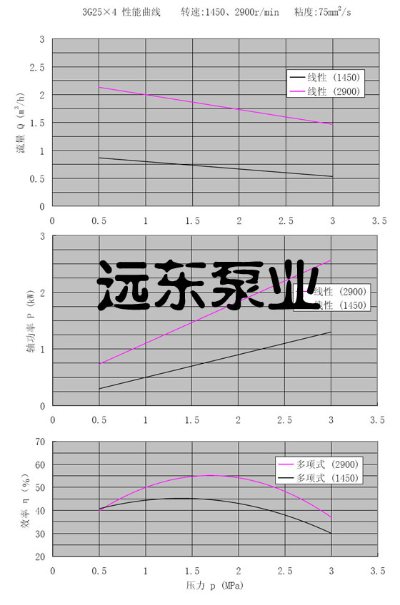 | 3GR25*4三螺杆(gan)泵轉速1450,2900r/min,粘度(du)75cst性能曲線圖(tu) | ||||||