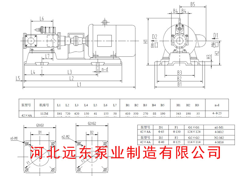 | 3GR42*4AW21三螺杆泵配112M底(dǐ)座安裝尺寸圖(tú)-遠東泵業 |